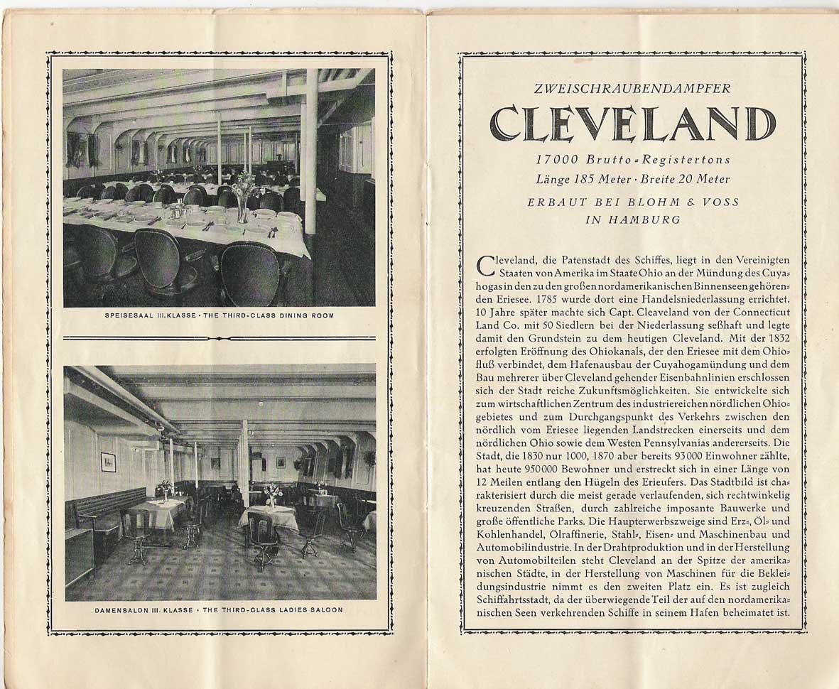 Das Deckblatt zeigt das Auswanderungsschiff, den Dampfer "Cleveland".